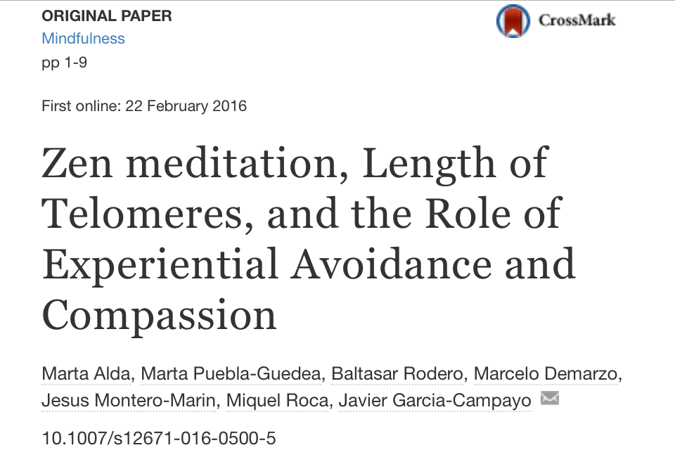 En el día de hoy se ha publicado en la revista Mindfulness (revista del primer decil en su disciplina) el último artículo del Dr. Baltasar Rodero. «Zen meditation, Length of Telomeres, and the Role of Experiential Avoidance and Compassion» A modo de resumen en podría indicarse dos conclusiones principales: – [...]