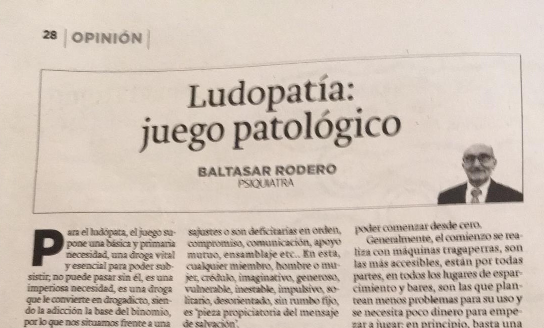 Ludopatía: juego patológico. Para el ludópata, el juego supone una básica y primaria necesidad, una droga vital y esencial para poder subsistir, no puede pasar sin él, es una imperiosa necesidad, es una droga que le convierte en drogadicto, siendo la adicción la base del binomio, por lo que nos [...]